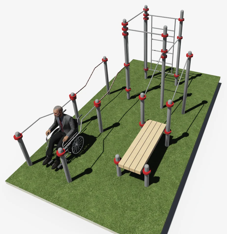 Комплекс Воркаут для инвалидов-колясочников 5,1м×3,3м×2,6м
