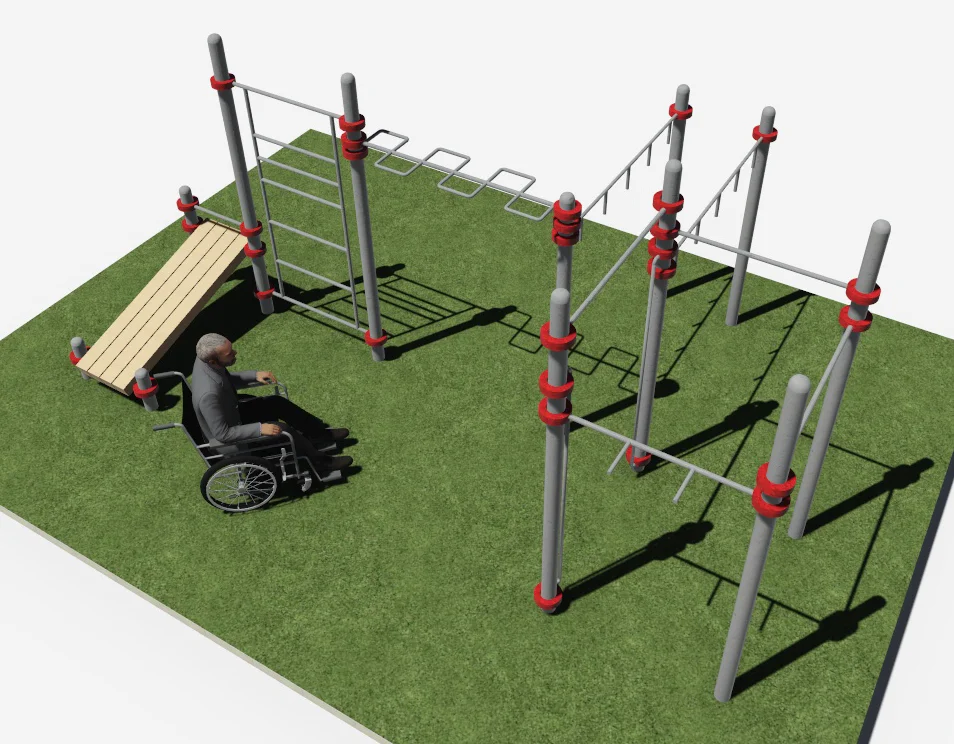 Состоит из: двенадцати вертикальных параллельно установленных опорных столбов, высотой 2600 мм – 4 шт., 2300 мм – 2 шт., 2000 мм – 3 шт., 1400 мм – 1 шт., 450 мм – 2 шт.