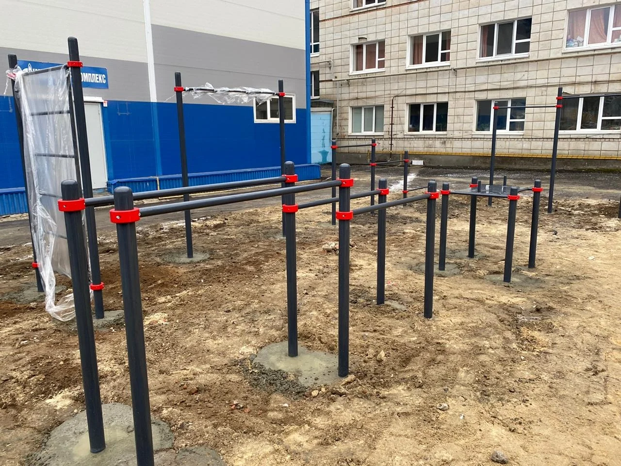 Б003 - Уличные брусья двойные разноуровневые;Т002 - Уличный турник двойной разноуровневый для workout;